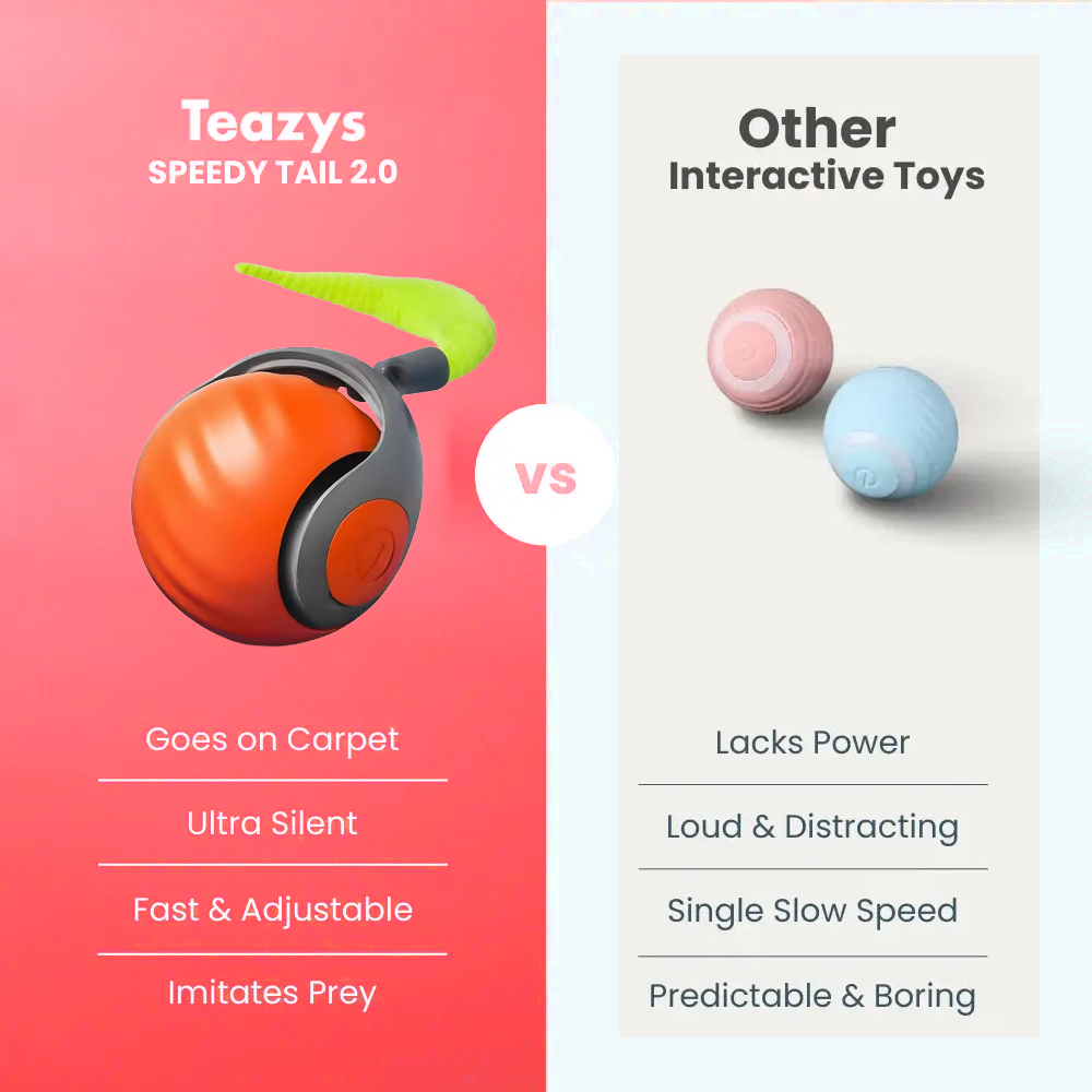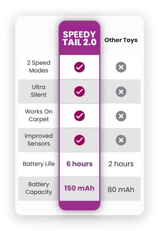Most cat toys are either too slow, too noisy, or just plain boring. They get stuck under furniture and wear out fast. The Speedy Tail 2.0 provides endless entertainment, works smoothly on any surface, and is incredibly durable—saving you time and money.