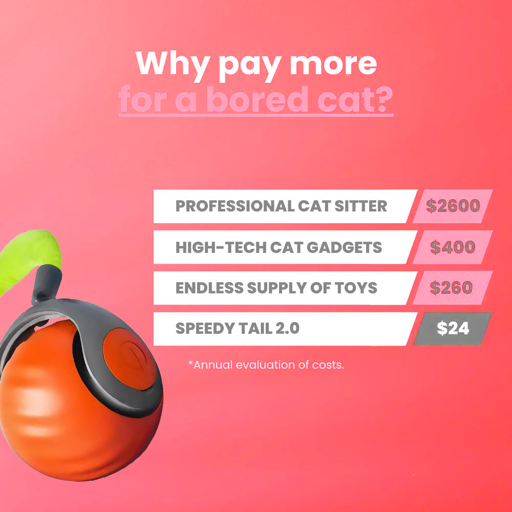 Most cat toys are either too slow, too noisy, or just plain boring. They get stuck under furniture and wear out fast. The Speedy Tail 2.0 provides endless entertainment, works smoothly on any surface, and is incredibly durable—saving you time and money.